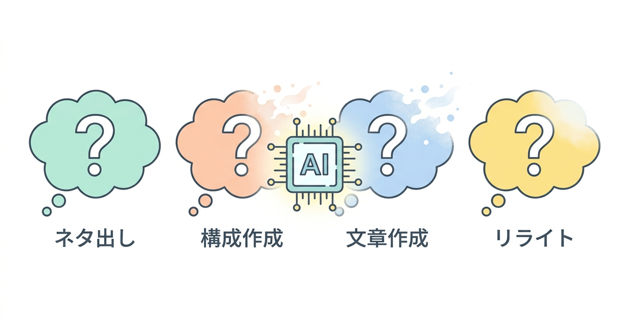| AIが担うこと | ・ネタ出し ・構成作成 ・文章作成や仕上げ作業 |